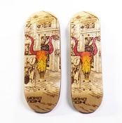 染色パーツを組み合わせた後レーザーで刻印して制作しています。